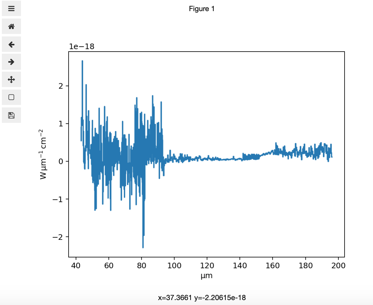 ISO LWS01 Spectrum Target: M31N 10.80459 41.38386 WAVE FLUX um W/cm^2/um http://nida.esac.esa.int/nida-sl-tap/data?RETRIEVAL_TYPE=STANDALONE&obsno=602020050