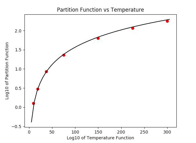 One of the advantages of using JPLSpec is the availability in the catalog of the partition function at different temperatures for the molecules. As a continuation of the example above, an example that accesses and plots the partition function against the temperatures found in the metadata is shown below: